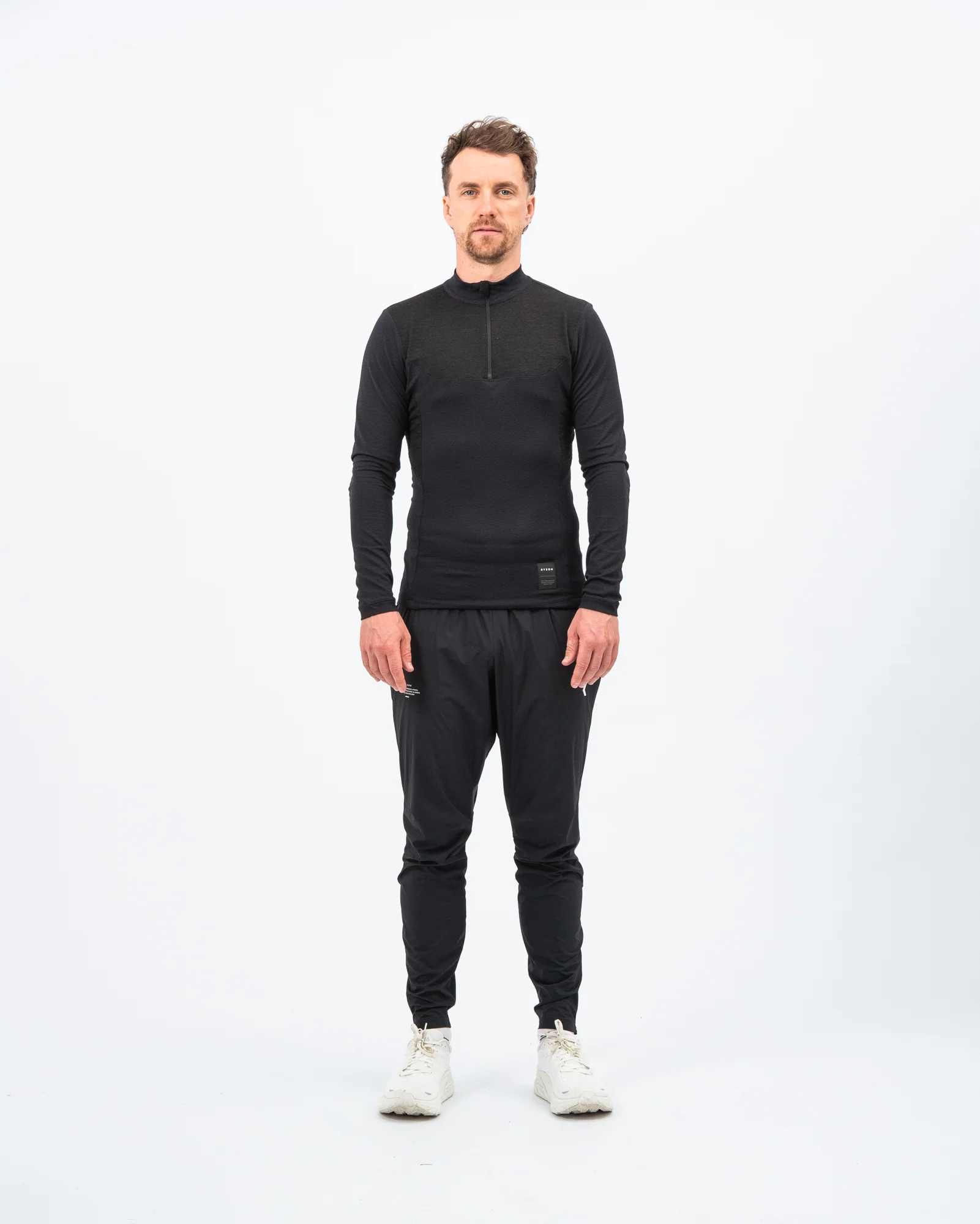 - Long-sleeve baselayer with Merino blend for cold-weather training